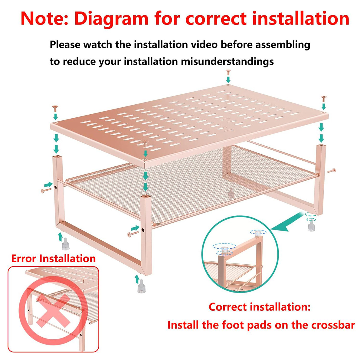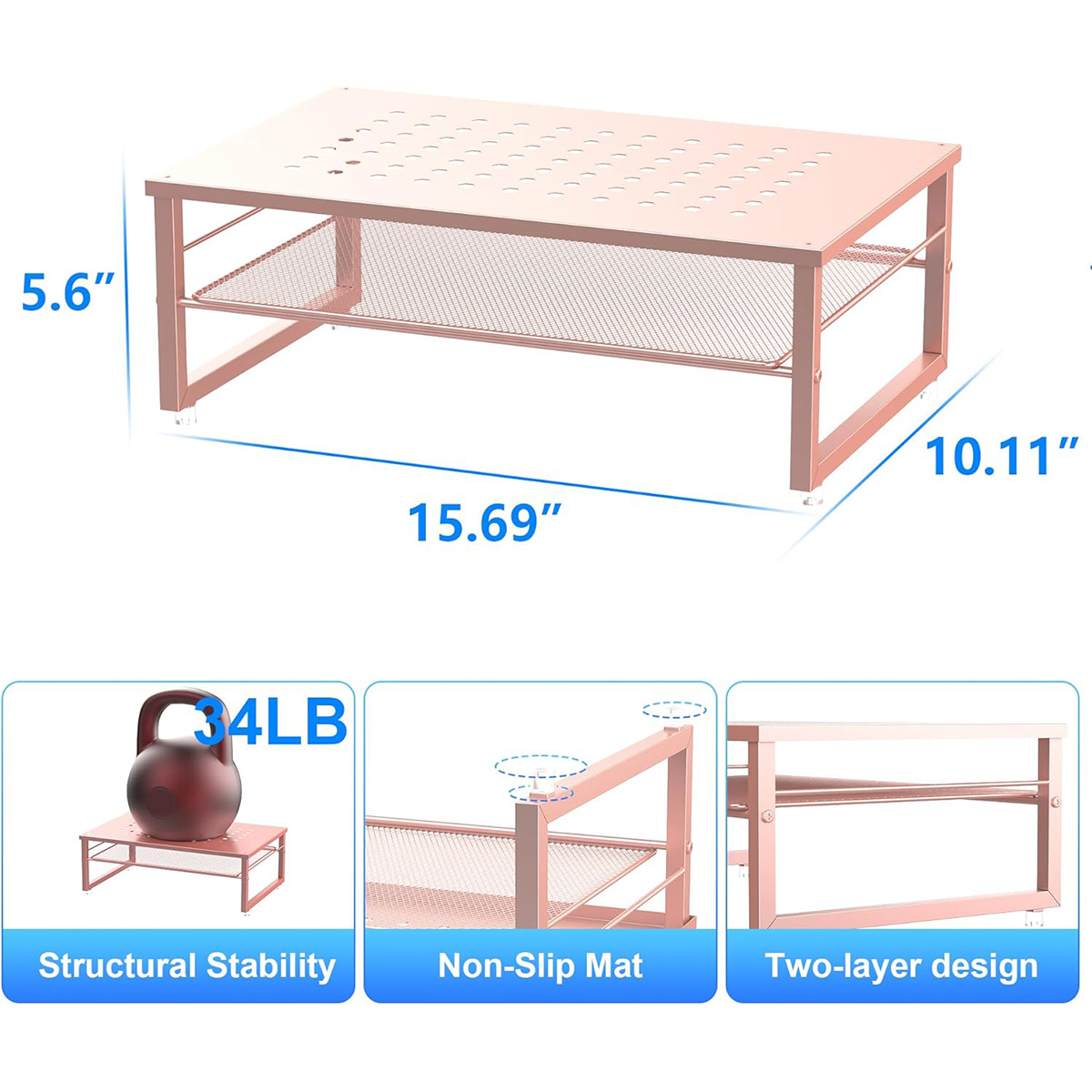 2-Tier Metal Monitor Stand Riser Office Desk Storage Organizer (Rose Gold)