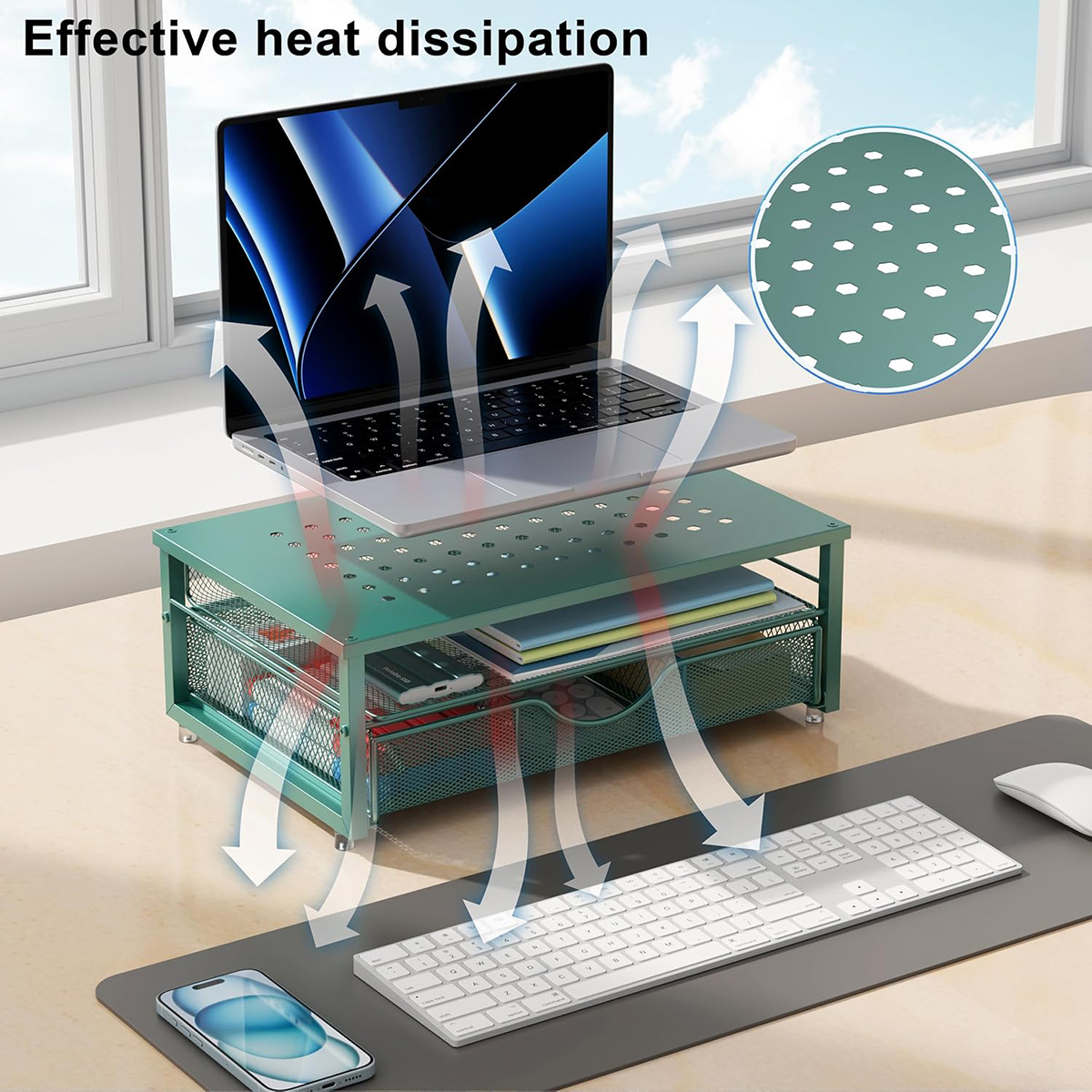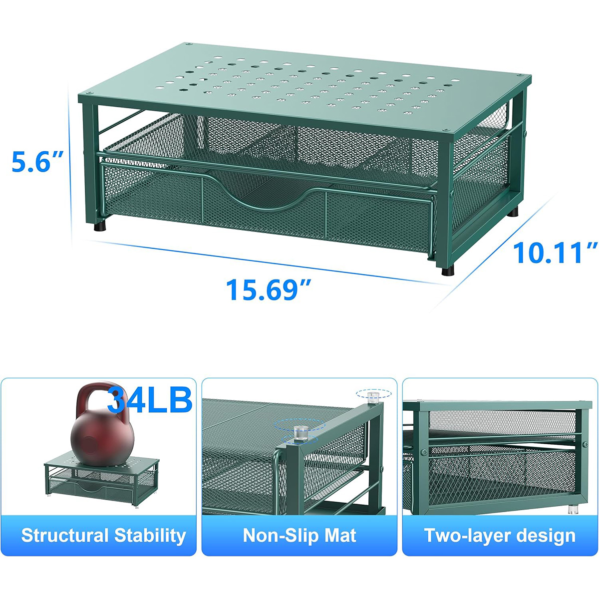 | Special Feature | Integrated desk organizer with sliding drawer, heavy steel construction with ventilated panels, non-slip rubber pads |