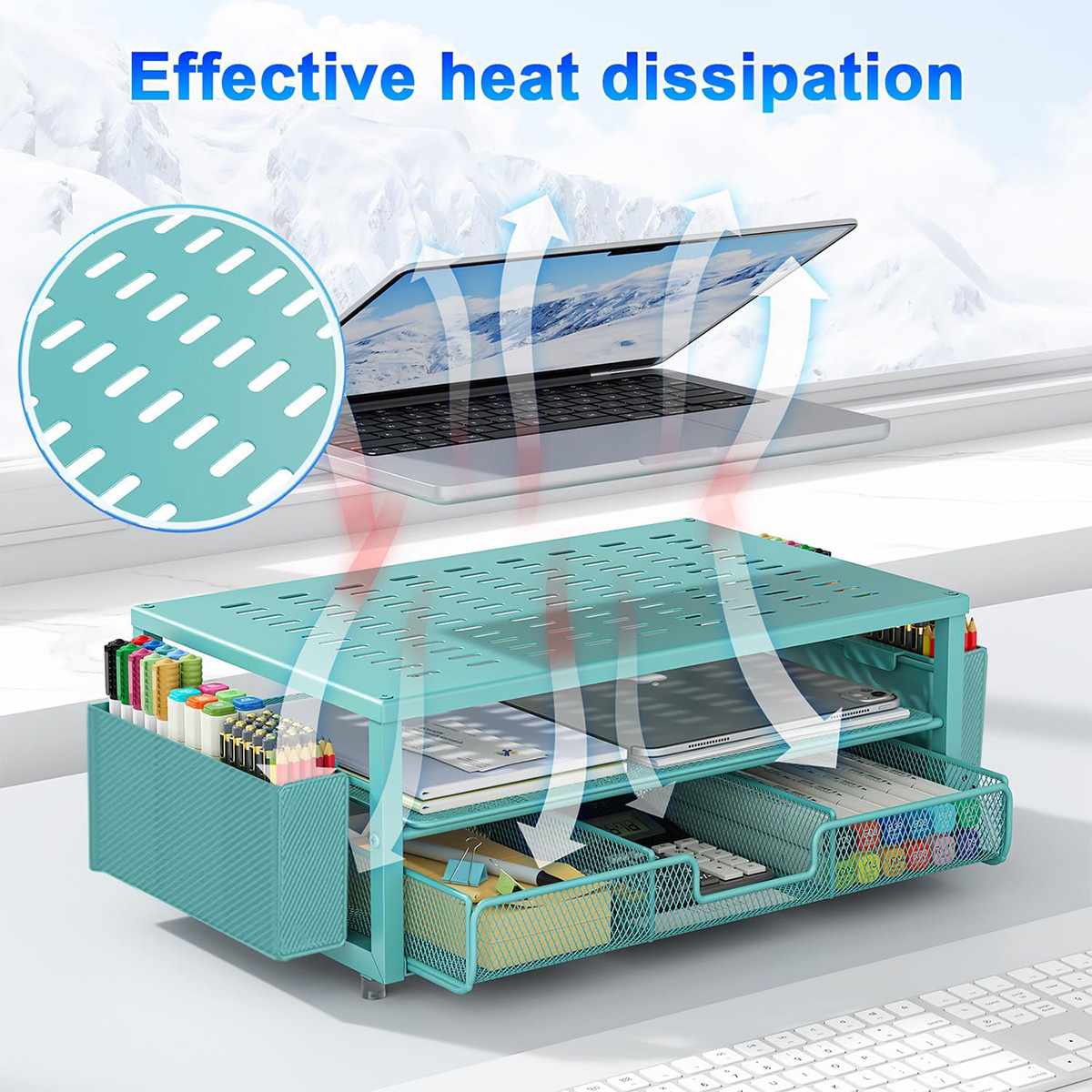 2-Tier Metal Monitor Stand Riser Office Desk Storage Organizer (Rose Gold)