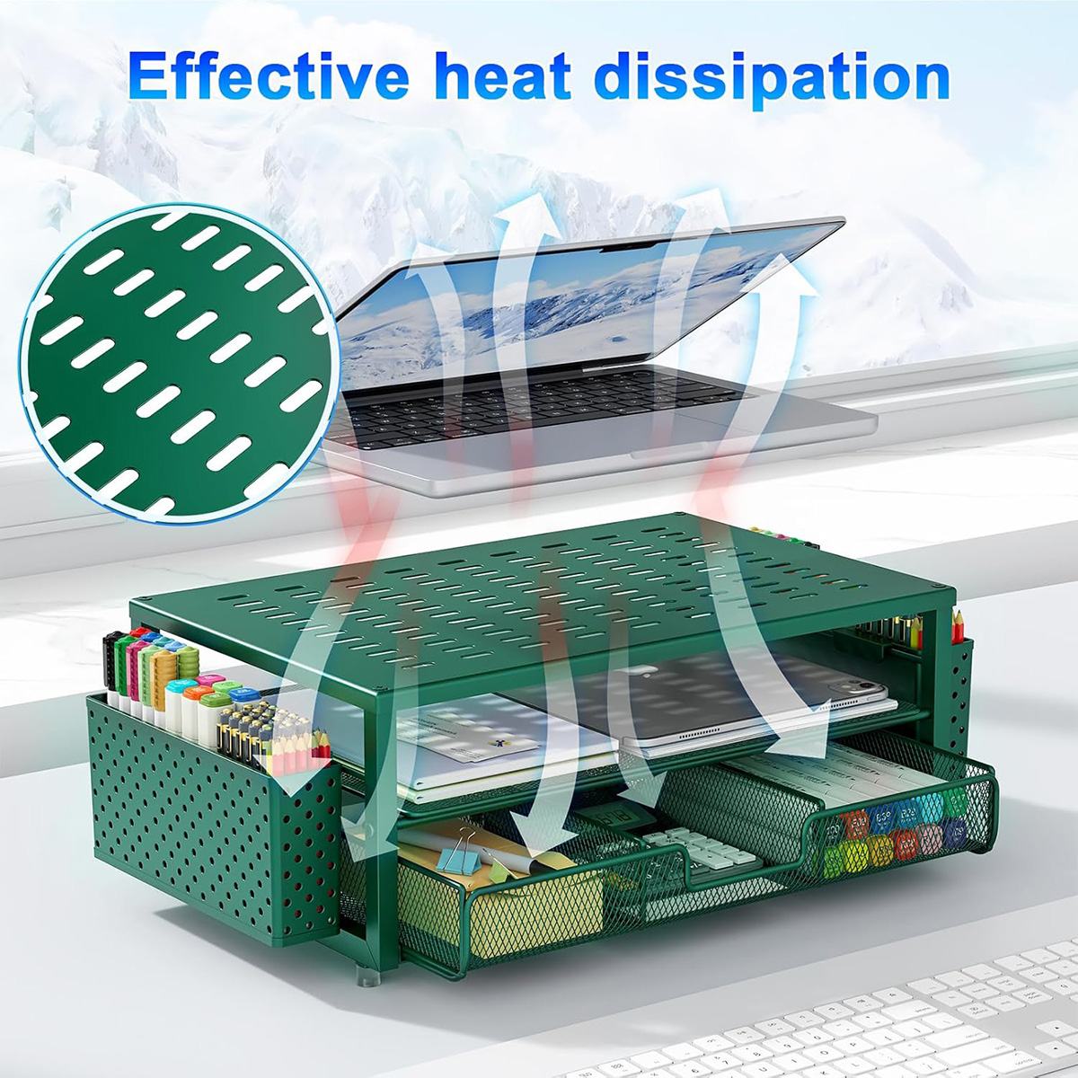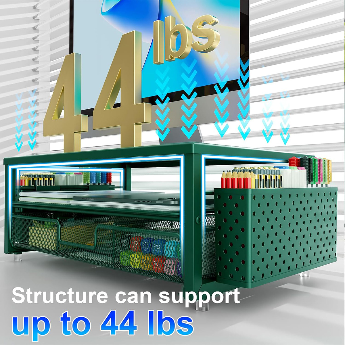 2-Tier Metal Monitor Stand Riser Office Desk Storage Organizer (Rose Gold)