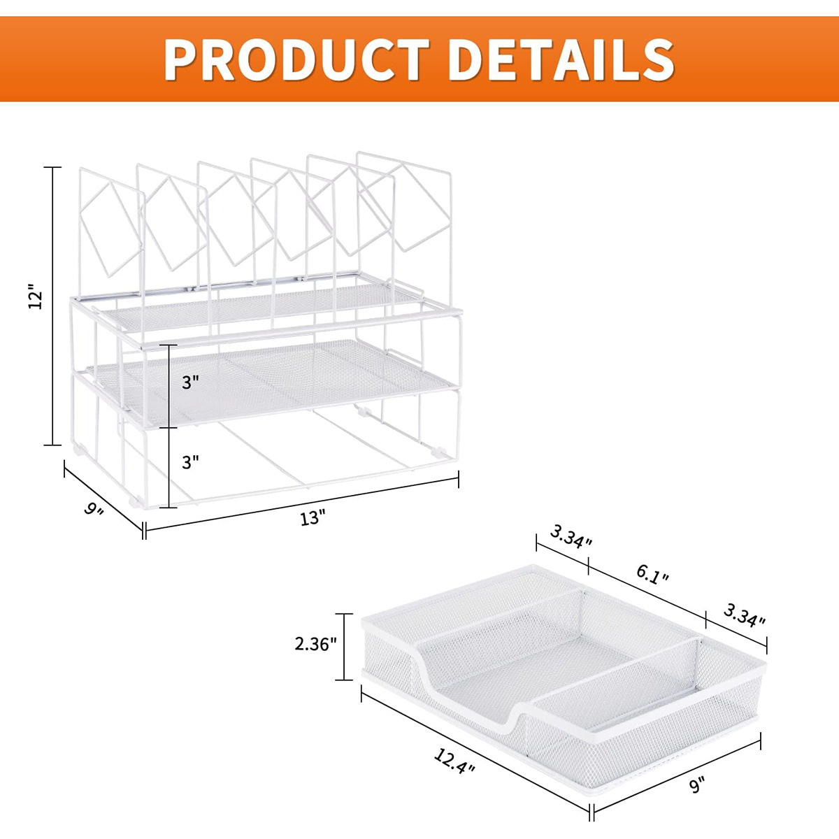 Desk Organizers and Accessories Office Supplies Organizer with Sliding Drawer Double Tray 5 Upright Section ​File Sorter (White)
